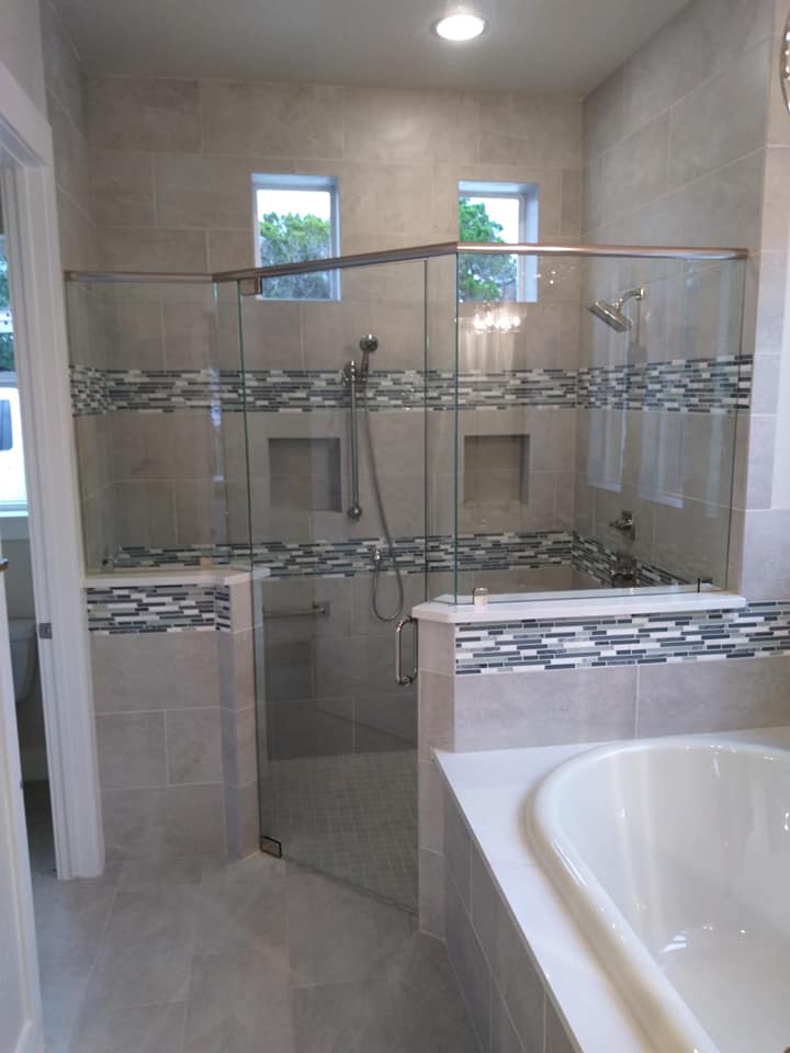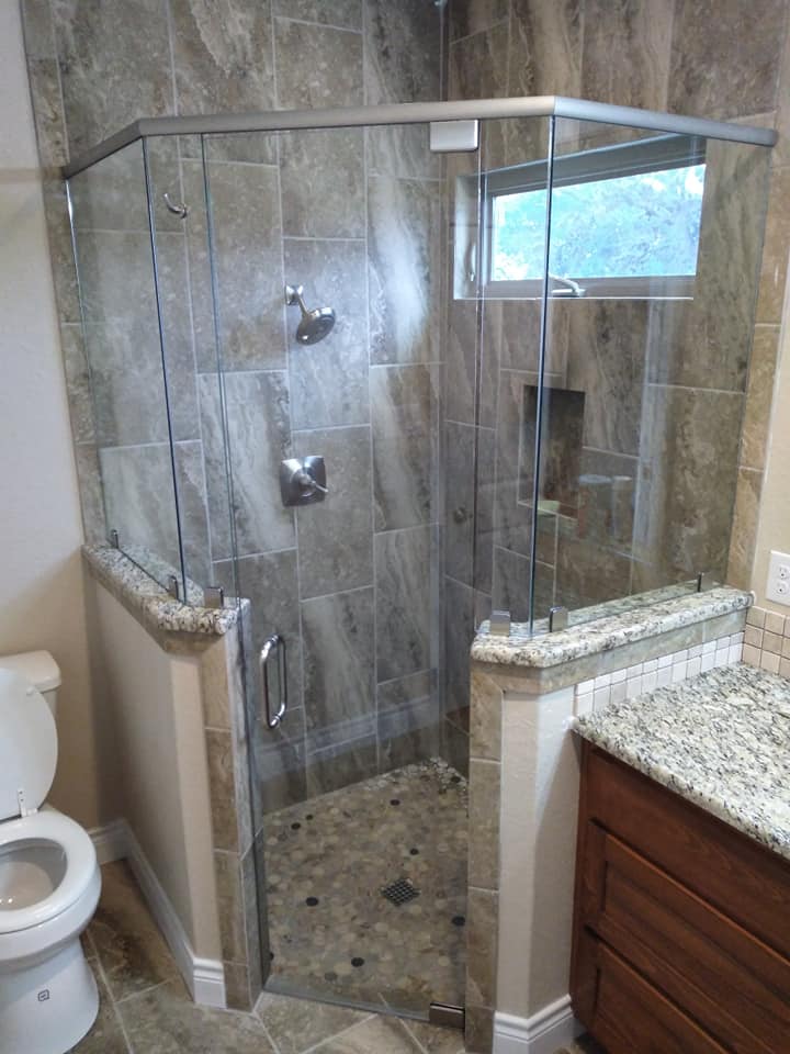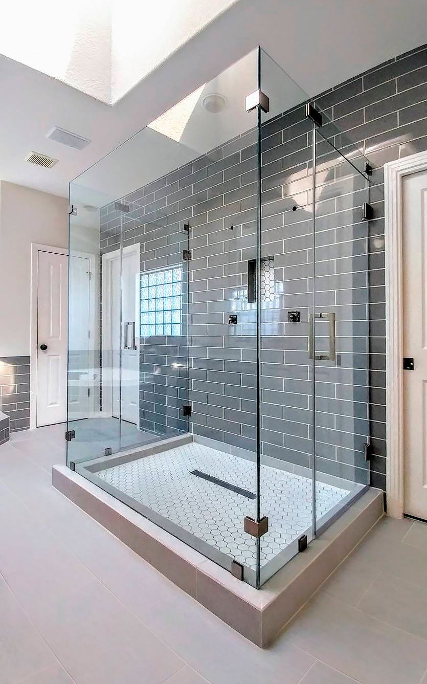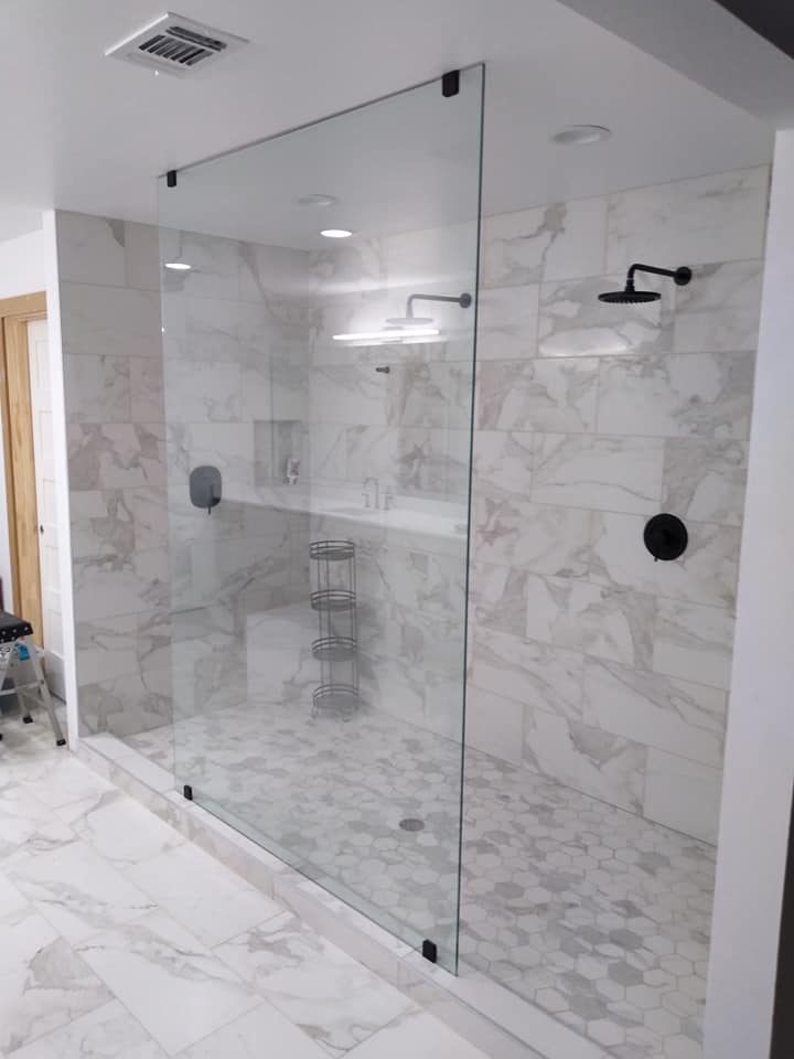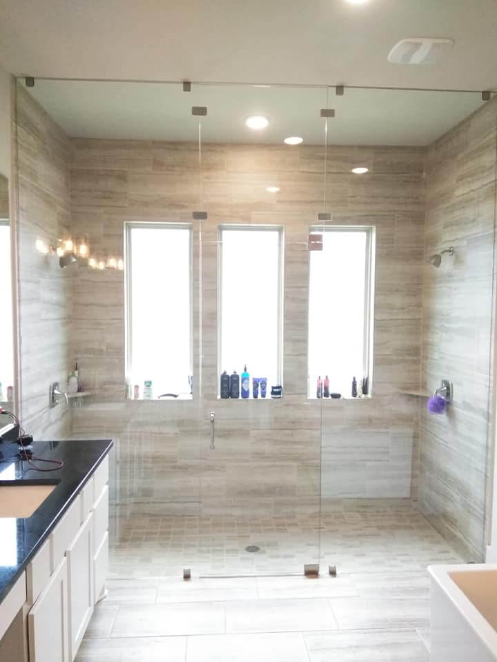 Our team has wide range of styles and designs to choose from and we are dedicated to creating the bathroom of your dreams and providing the best service possible. Trust our team for your next 90 degree frameless shower door installation.