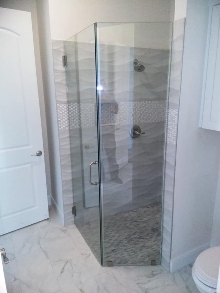 Our team has a wide range of styles and designs to choose from, and we are dedicated to creating the bathroom of your dreams and providing the best service possible. Trust our team for your next Neo-Angled frameless shower door installation.